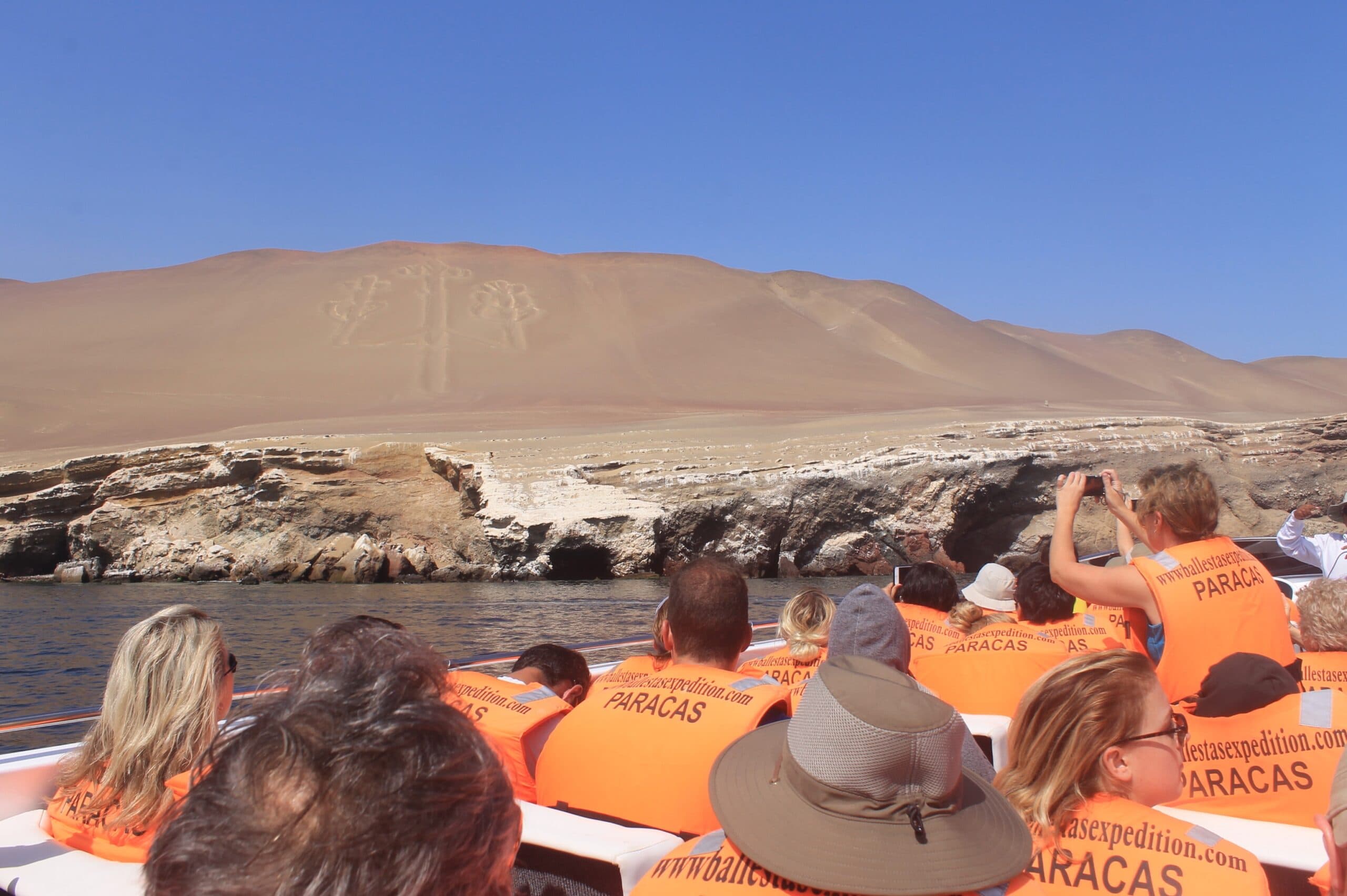 Nuestro primer punto de interés será la figura en la arena conocida como «El Candelabro», donde el guía nos explicará las diferentes teorías sobre su origen y función. Continuaremos navegando por las Islas, rodeándonos de la rica vida marina, incluyendo lobos marinos, pingüinos de Humboldt y diversas aves marinas.